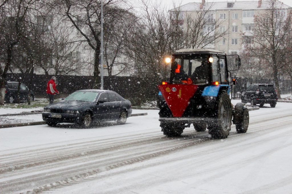 Як розповів начальник УЖКГіБ Віктор Фіщук, залучено 7 одиниць основної техніки, з них – 4 трактори з лійками, які посипають сіллю, 1 трактор з причепом РУМ, який посипає піщано-сольовою сумішшю дороги, а також на КП «Полігон» є бобкат і навантажувач, які використовують за потреби.