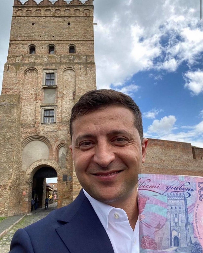 “Позаду мене – в’їзна вежа Луцького замку, та сама, що на нашій 200-гривневій купюрі. Завжди мріяв порівняти малюнок з реальністю. У замку відчув дух історії та волинських легенд”, – написав Зеленський.