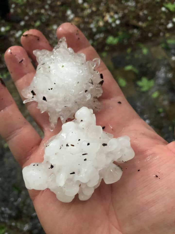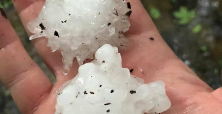 “Вишні під деревами, город в полях 80% знищено, все прибите до землі, буряки, гарбузи огірки знищено навіть під будинками. Машини побиті, бачила знайомого, не встиг з поля вчасно, то багажник як решето в дірах. Хто в полях був,теж побитий. Дахи побиті, верхів’я дерев”,- розповідають люди.