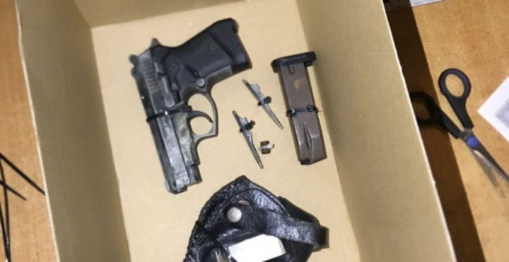 Осіб супроводили у Залізничний відділ поліції де в присутності понятих у громадянина вилучили зброю, кобуру, магазин та два предмети, візуально схожих на ударники від кулемету.