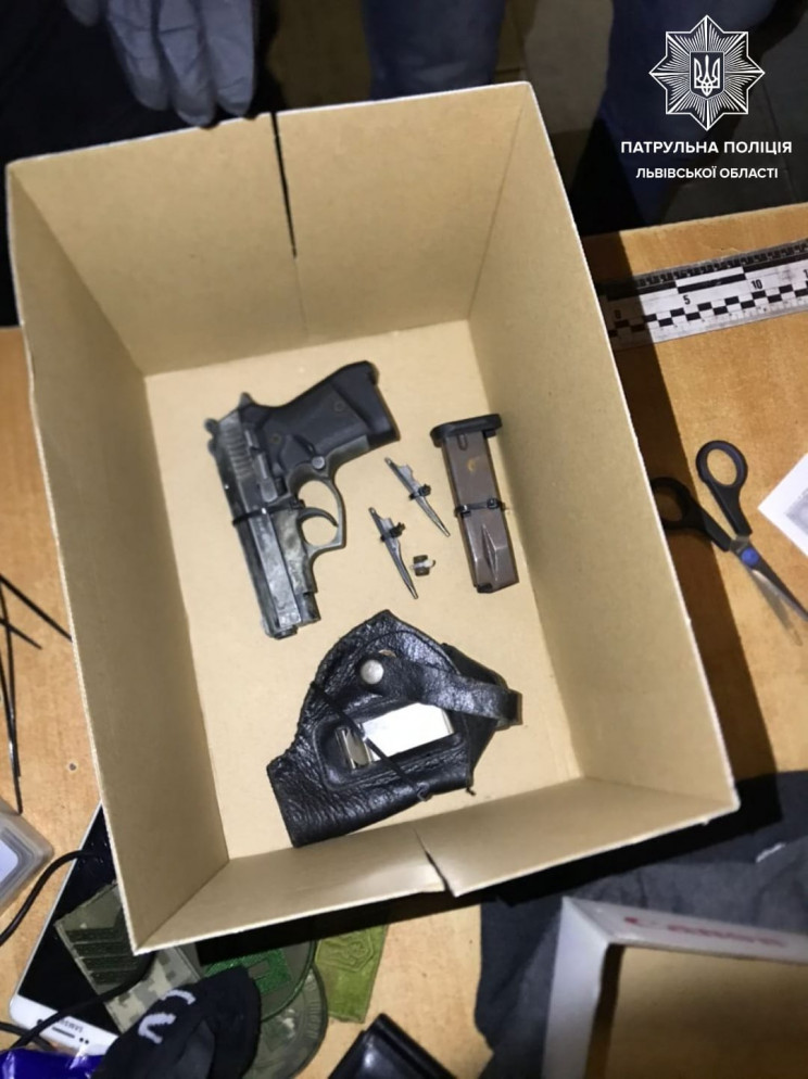 За лічені хвилини екіпаж був на місці і зустрівся із 23-річним чоловіком і отримав описи ймовірного зловмисника.  Його виявили неподалік і під час поверхневої перевірки у 21-річного мешканця Волинської області знайшли предмет схожий на пістолет.  Чоловік перебував у стані алкогольного сп’яніння.