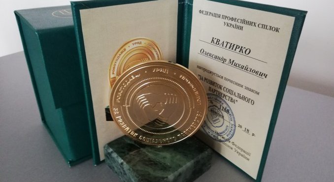 Голова Федерації профспілок Волинської області Іванна Дубинка-Філозоф учора, 28 січня, під час підсумкової колегії лісівників вручила начальнику Волинського ОУЛМГ Олександру Кватирку відзнаку Федерації Профспілок України «За розвиток соціального партнерства».
