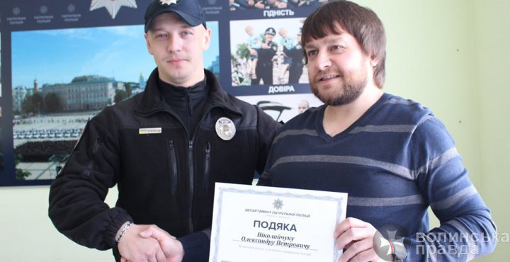 На Волині патрульна поліція на щорічній комісії до складу якої входять представники громадськості та Управління, вручила подяку відомому активісту Олександрові Ніколайчуку. Про це повідомляє патрульна поліція Волині.