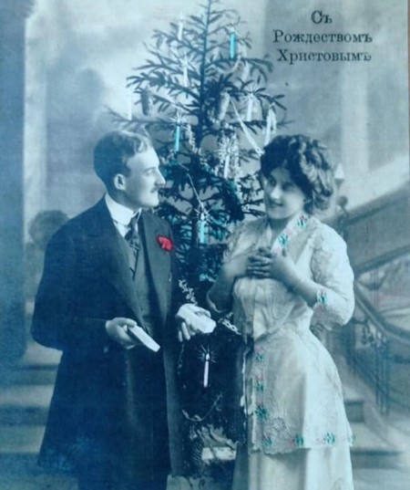 На різдвяних листівках початку XX століття майже завжди зображували ялинку, подарунки, дітей і закоханих.