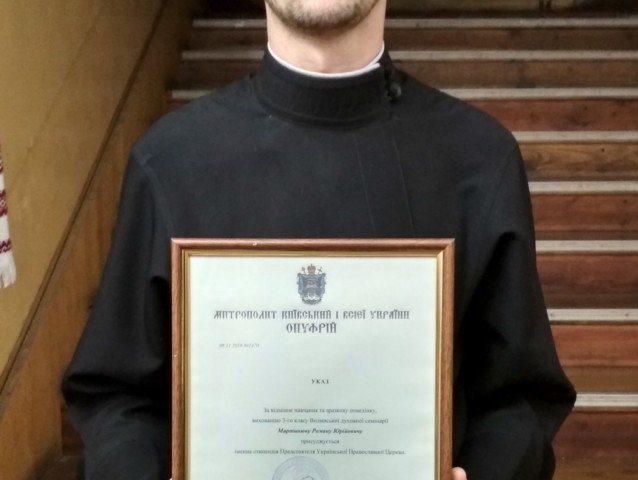 Вихованець Волинської духовної семінарії Роман Мартинюк отримав іменну стипендію Предстоятеля УПЦ. Про це інформують на сайті семінарії.