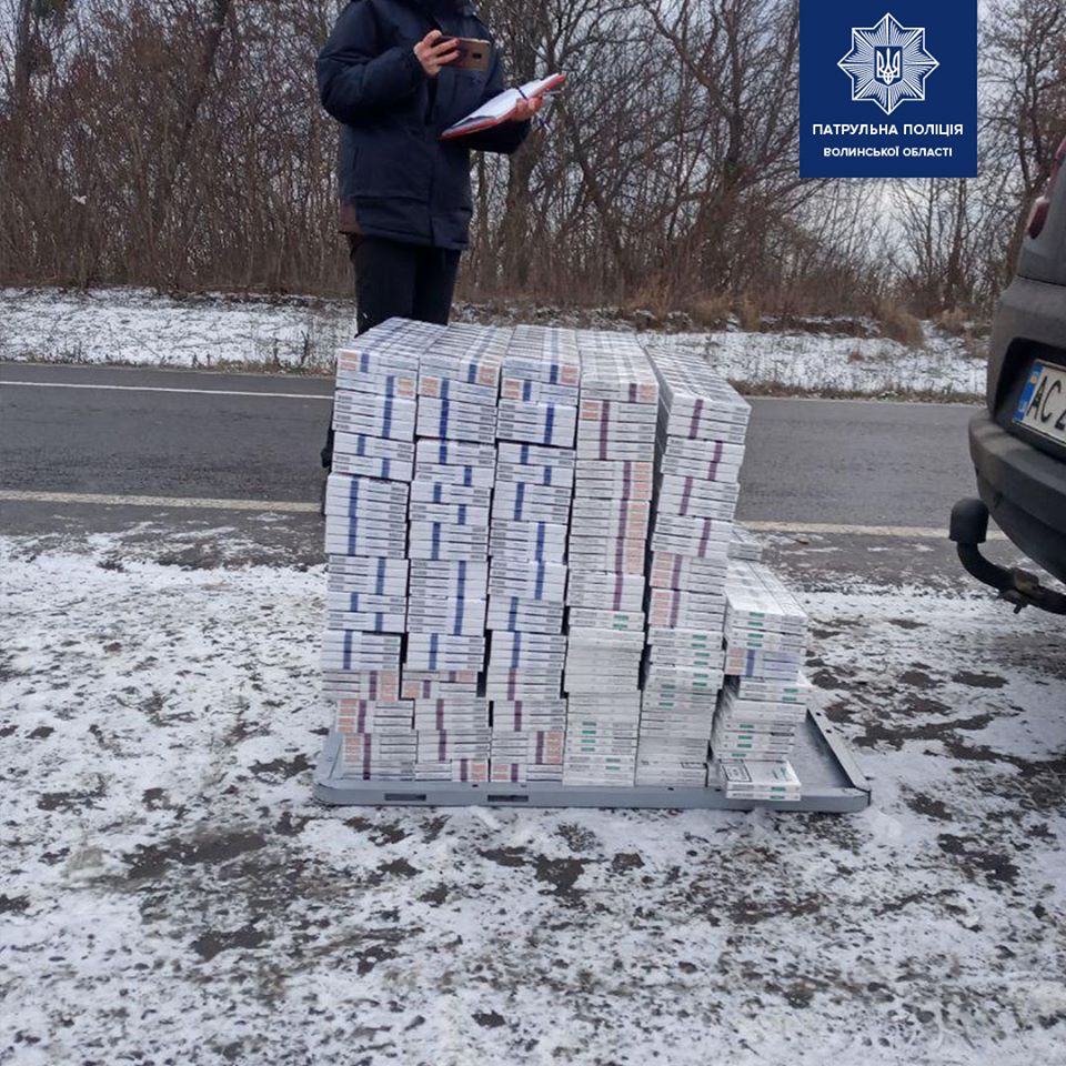Виявили три великі сумки: біля Луцька затримали автомобіль, набитий цигарками (ФОТО)