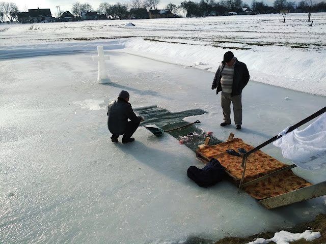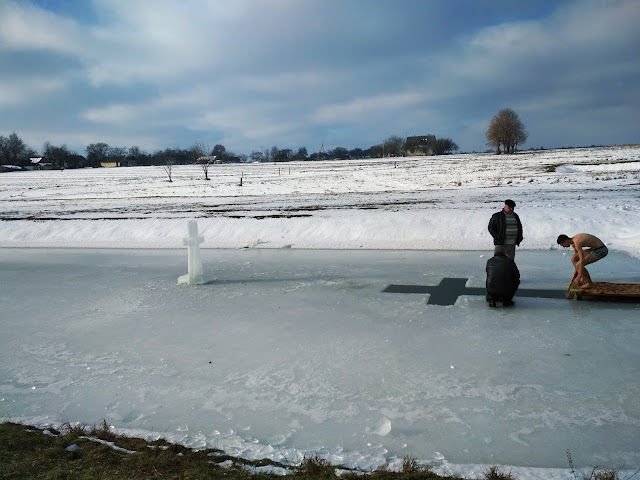 Після хресної ходи настоятель храму отець Павло освятив воду у місцевому ставку, який напередодні підготували та святково прикрасили парафіяни храму. При чому воду усвятили у спеціально зробленій у вигляді хреста ополонці. Кілька десятків бажаючих і молодших, і старших вишнівців окунулися в освяченій воді. Прихожани і гості села також мали можливість зігрітися гарячим чаєм та підкріпитися солодким печивом.