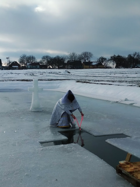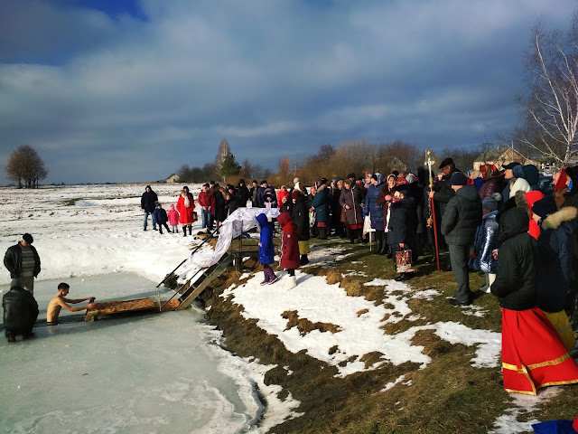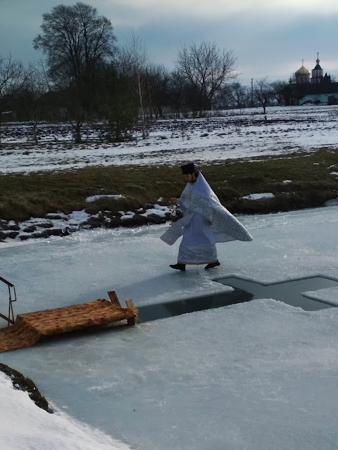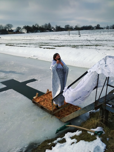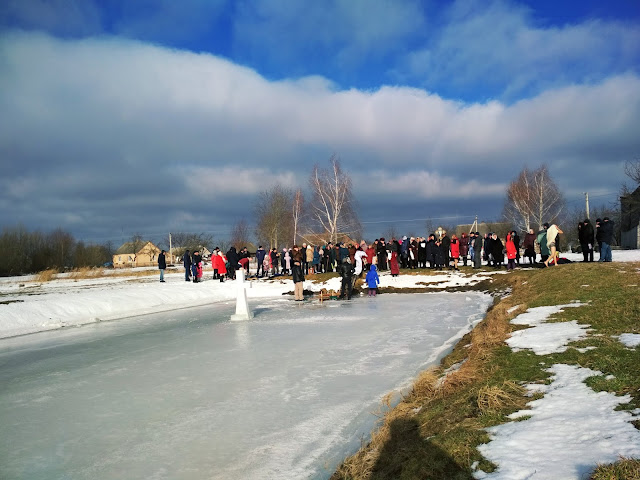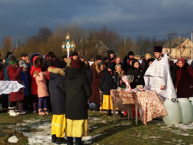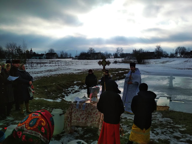 Після святкової Божественної Літургії, усі прихожани храму Димитрія Солунського хресною ходою вирушили до водойми, де і було звершене богослужіння Великого освячення води. Приємно було спостерігати, з якою відповідальністю учні недільної школи, які прислуговують у церкві, несли хоругви, а дівчатка-хористки співали церковні піснеспіви.