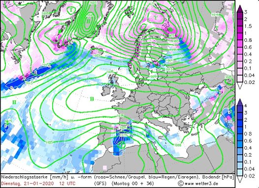 “Ви скажете, що вранці в понеділок все ж літав сніг, незважаючи на таку ж ситуацію. Правильно. Це починає поступово перебудовуватися атмосфера, вплив атлантичного антициклону слабшає, а потужного північного циклону – посилюється. Тому цей невеликий сніг, ще й завдяки невеликим мінусам, виявився предтечею найближчих опадів, які очікуються в Україні 22-23 січня”, – уточнила Діденко.