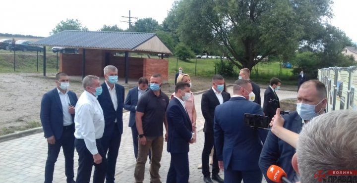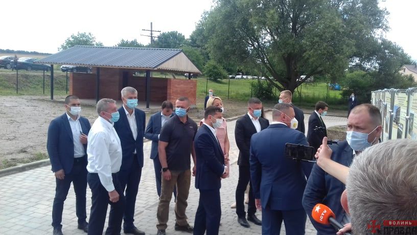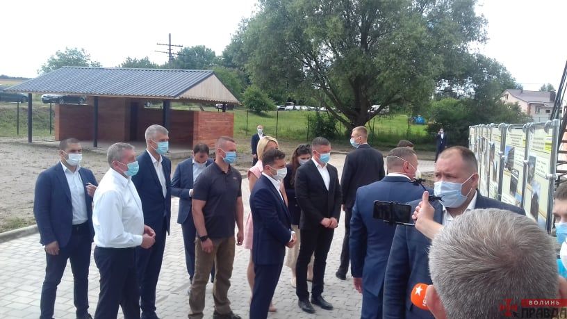 Станом на 11:40 гарант перебуває у селі Крупа Луцького району, щоб оглянути хід будівництва дитячого садка. На місці Зеленського зустріли представники Заборольської та Княгининівської ОТГ, які виступають проти приєднання до Луцька.