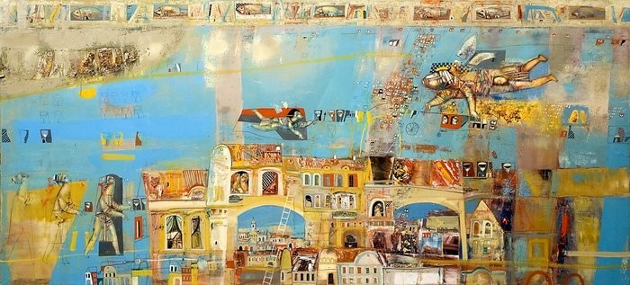 Твори Миколи Журавля це – саме той випадок, коли нестерпно хочеться торкнутися до них рукою, відчути холодний полиск фарб, шорстку матеріальну плоть фактур. Інколи термін «малярство» стає затісним для мистця.З віртуозною невимушеністю та вражаючим естетизмом художник поєднує у своїх композиціях те, що практично непоєднуване: гармонійну глибину старих як світ лесирунків і загрубілу структуру іржавого металу, а ще уламки, фрагменти, уривки якихось покинутих, пожовклих, знищених часом предметів, із вишуканістю колористичних плям. Відтак, поверхня творів асоціюється із пластикою рельєфів, або ж зі специфікою колажів. Мистецький світ Миколи Журавля сповнює фабула якихось суперечливих колізій: від інтонацій агресії, брутальної викривальності, до тріумфу зворушливої людяності та надії. Все, створене художником, нагадує сторінки якихось епічних текстів: про світ, людину, час, про речі відвічні й зрозумілі кожному. Завдяки майстерній комбінаториці асоціацій художнику вдається спонукати глядача до мислення й глибокого співпереживання із ним конфлікту минувшини та сьогодення. Визначні події, співіснування епох, проблеми суспільних формацій, а ще мить і вічність, швидкоплинність людського життя – ось художньо-філософська парадигма творчих пошуків Миколи Журавля. В його образах багато драматизму і, навіть, трагосу. Одначе, інколи без цих, здавалося б, руйнівних рис не наступить мудрість прозріння й катарсису…
